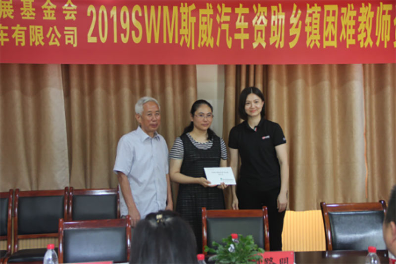 2019年9月10日,是第三十五個(gè)教師節(jié),在全社會(huì)向老師致敬的同時(shí),重慶市璧山區(qū)福祿小學(xué)校的老師收到了一份特殊的教師節(jié)禮物。在2019SWM斯威汽車(chē)資助鄉(xiāng)鎮(zhèn)困難教師資助金發(fā)放活動(dòng)中,來(lái)自璧山區(qū)福祿小學(xué)校的受助教師代表伍夏紅老師,領(lǐng)取了5000元的“SWM斯威汽車(chē)鄉(xiāng)鎮(zhèn)教師專(zhuān)項(xiàng)教育扶持資金”。