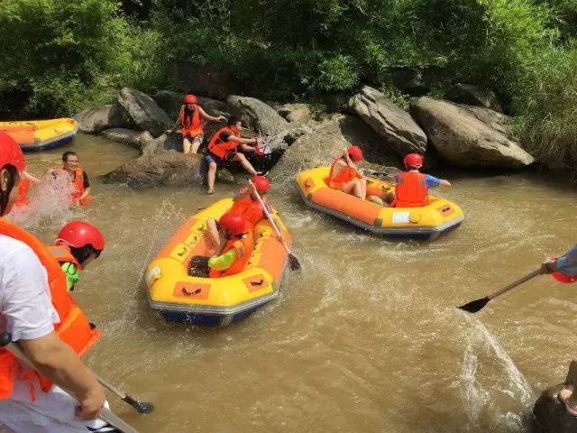 第二天,激情漂流開(kāi)始了。組辦方也是頗費(fèi)心思,一男一女搭配乘坐一艏船,戴上安全帽,穿上救生衣,拿著船槳,出發(fā)了。最高18米的落差,一個(gè)急速俯沖,各種驚聲尖叫層出不窮、連續(xù)不斷。漂流途中更是刺激無(wú)比,一不小心就會(huì)遭遇埋伏,請(qǐng)多人拿著頭盔、漿、瓢、盆各種武器,冰涼的河水鋪面而來(lái),潑水的人笑哈哈,被潑的人哇哇叫,被潑得分不清東南西北。各種潑水,各種翻船,輪番上演,大家玩得不亦樂(lè)乎。