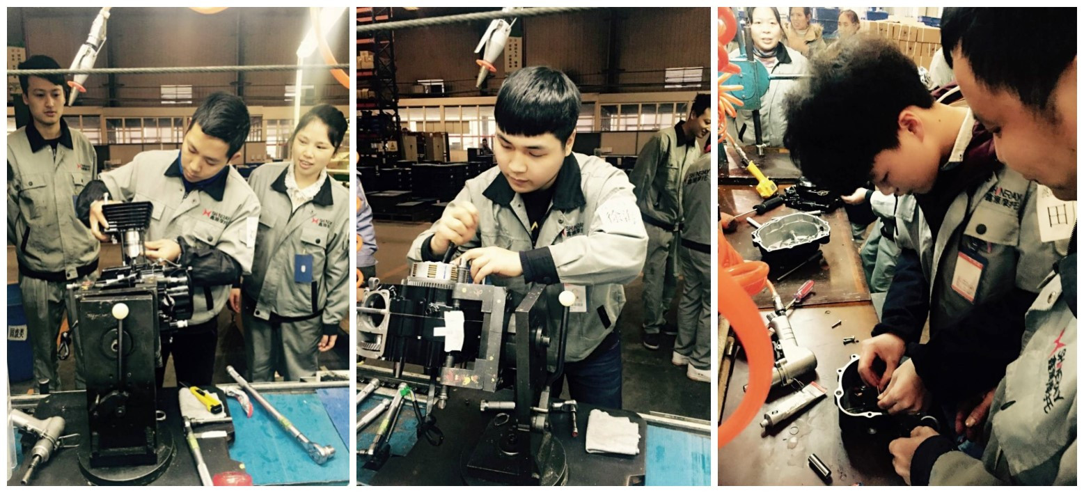 走進(jìn)比賽現(xiàn)場(chǎng),我們看到,每一個(gè)小組成員都高度集中精神,大家分工明確,從挑選零件到檢查裝配工具,再到組裝部件等復(fù)雜裝配流程,都能夠一氣呵成,連額頭上留下的汗水也無(wú)暇顧及。比賽不僅考驗(yàn)了我們員工的應(yīng)變能力,更檢驗(yàn)了我們員工在平時(shí)工作中的熟練程度及品質(zhì)意識(shí)。