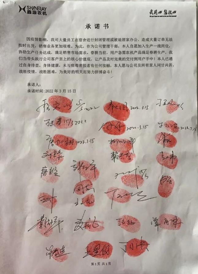 農(nóng)機(jī)公司按照疫情防控及復(fù)工復(fù)產(chǎn)的相關(guān)要求,一手抓疫情防控,一手抓復(fù)工生產(chǎn),管理團(tuán)隊(duì)率先垂范、擔(dān)當(dāng)作為,確保生產(chǎn)進(jìn)度能夠按期達(dá)成,用實(shí)際行動(dòng)做到“兩手抓、兩手硬” 的具體要求,確保打贏這兩場(chǎng)戰(zhàn)役,最終能夠全面取得兩個(gè)勝利!