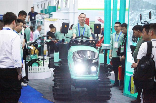 在本屆國際農(nóng)機展上,鑫源農(nóng)機的展位格外亮眼,全新冰藍色產(chǎn)品外觀,受到了各級政府領導及廣大客戶的一致認可。1GZL-130A鑫獵豹自走履帶旋耕機作為本屆展會亮相的主打產(chǎn)品,吸引了無數(shù)人駐足停留試駕,1GZL-130A采用國四三缸30馬力柴油發(fā)動機,動力超強;行走系統(tǒng)采用超寬高花橡膠履帶確保濕地作業(yè)不打滑,水田作業(yè)不下陷;變速箱采用HST液壓雙差速設計,可實現(xiàn)左右履帶差速運行,綜合實力優(yōu)越,耕整效果好,完全滿足丘陵山區(qū)水田、旱地以及經(jīng)果林高效作業(yè),讓丘陵耕作不再難。