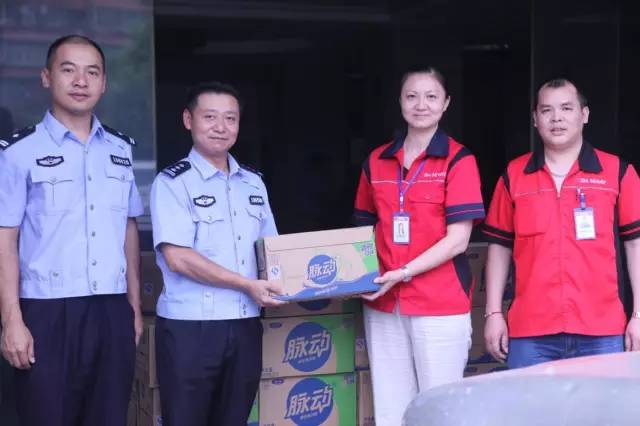 第二站來到重慶市公安局九龍坡區(qū)分局含谷派出所,受到了謝軍所長和各位民警們的熱情迎接。對于長期奮戰(zhàn)在一線,與犯罪分子進行斗爭的民警們,此次向民警們贈送的不僅是一份清涼飲料,還有一份敬意,對他們維護片區(qū)和平安全表達深深的敬意。